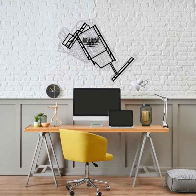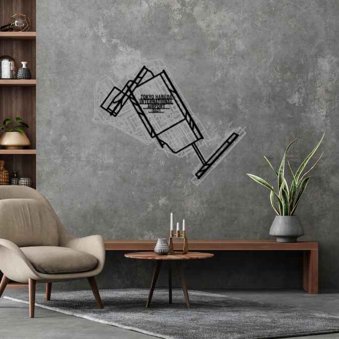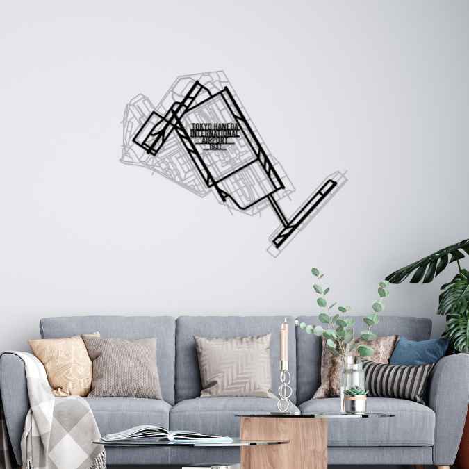 This Tokyo Haneda International Airport metal Silhouette is our multilayer and multicolor 3-piece wall art. It includes the landing strips in our classic black finish and the surrounding area in a shiny and sparkly gray color. To top it off, we attach a metal plate, with the airport's name, and the construction date. This masterpiece alone or in combination with any of our other products will give your office, room, or garage a unique look that will catch the attention of any aviation enthusiast and will add a subtle touch of aviation spirit to your home's interior design.