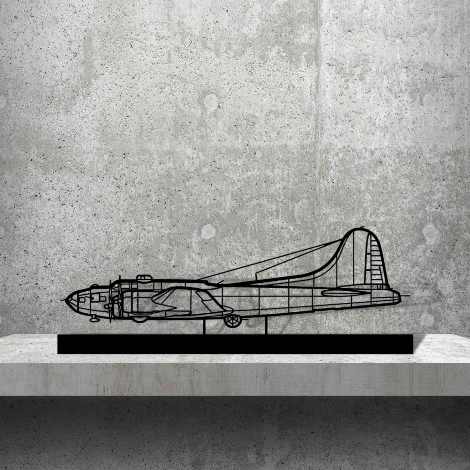 This B-17 Standing Silhouette will give your hangar, office or room a unique look that will catch the attention of any aviation enthusiast and will add a subtle touch to your interior design.