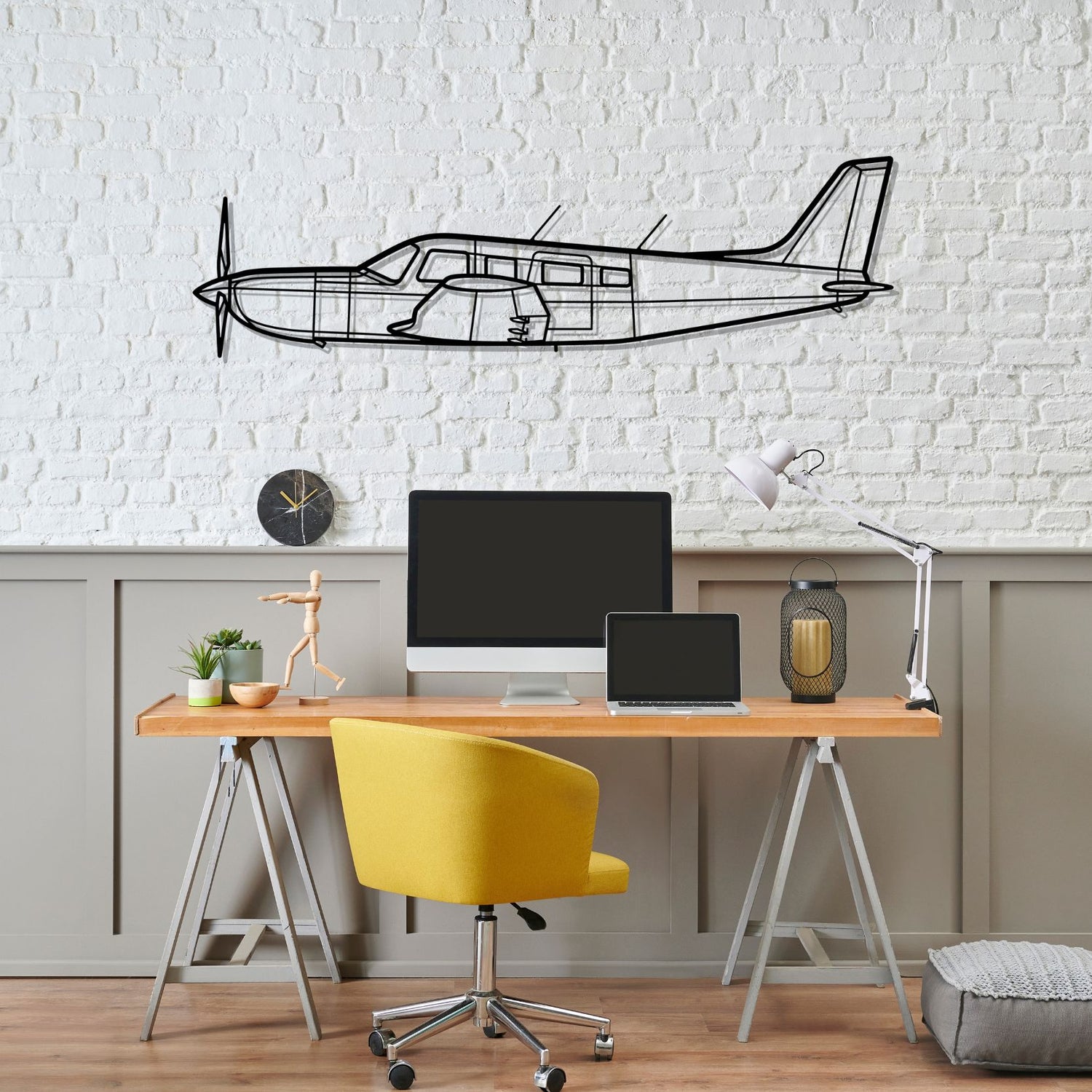 This PA-32R-301 Saratoga HP II silhouette wall art will give your hangar, office or room a unique look that will catch the attention of any aviation enthusiast and will add a subtle touch to your interior design.