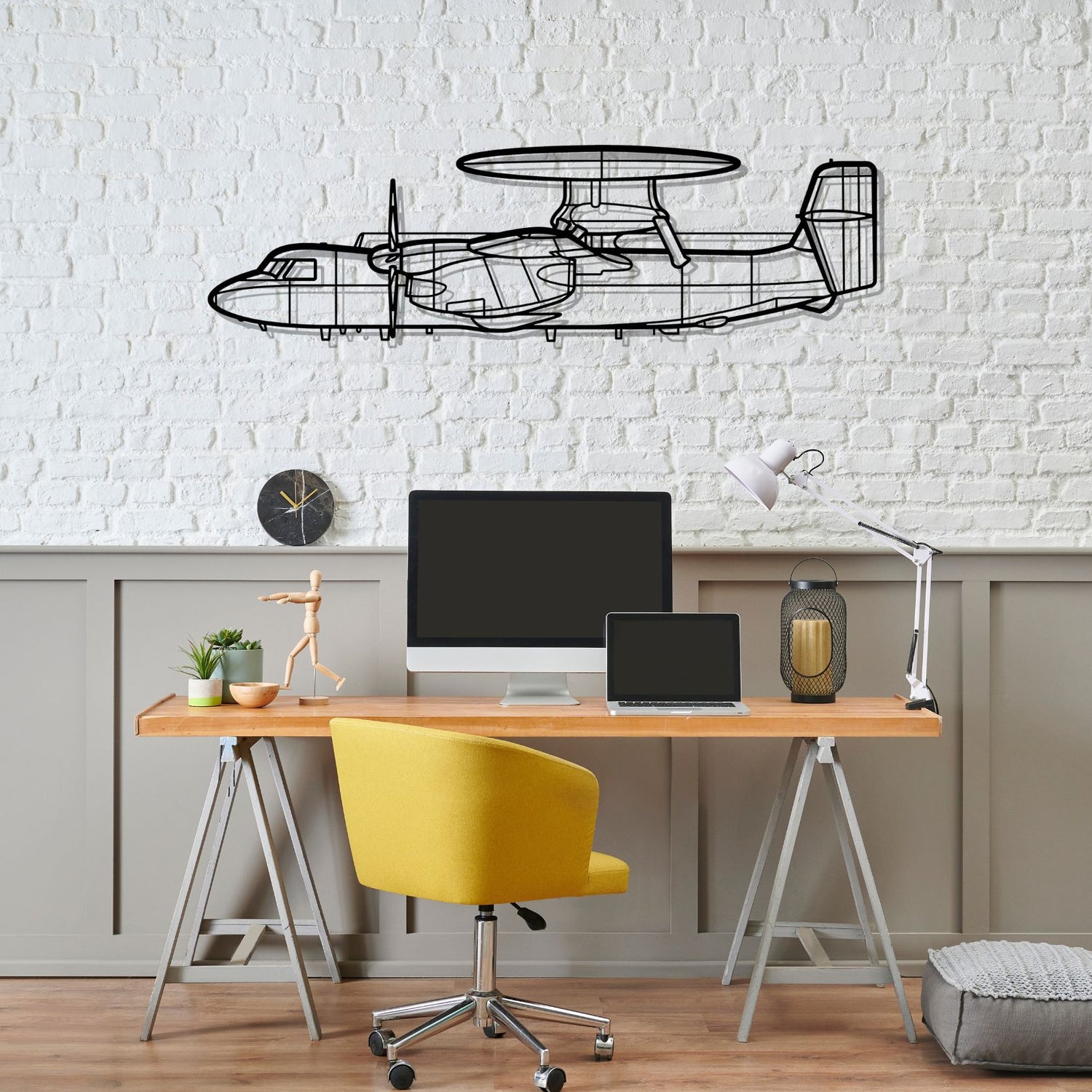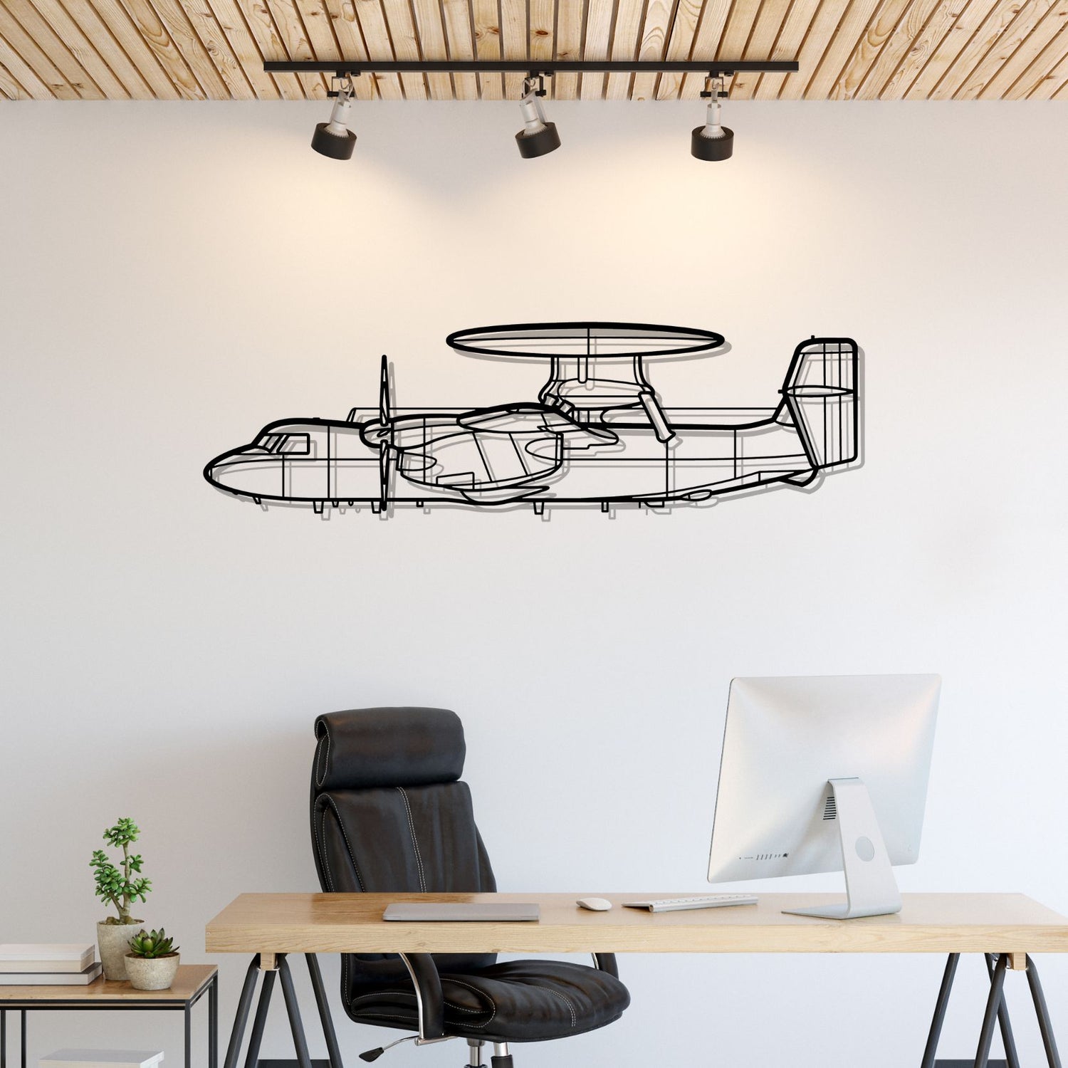 This E-2D Hawkeye silhouette wall art will give your hangar, office or room a unique look that will catch the attention of any aviation enthusiast and will add a subtle touch to your interior design.