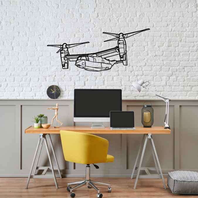 This CV-22 Osprey Angle silhouette wall art will give your hangar, office or room a unique look that will catch the attention of any aviation enthusiast and will add a subtle touch to your interior design.