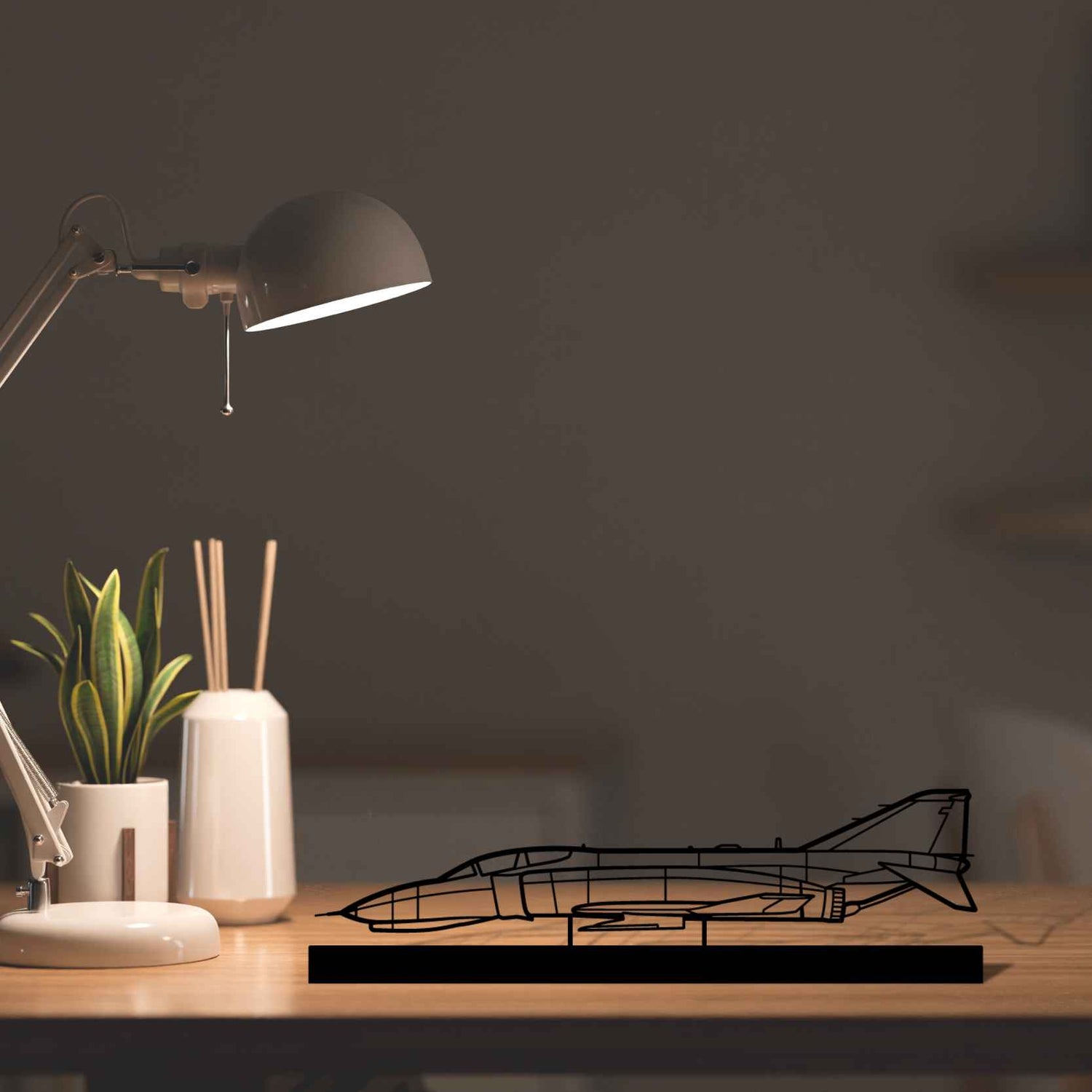 This F-4 Phantom Standing Silhouette will give your hangar, office or room a unique look that will catch the attention of any aviation enthusiast and will add a subtle touch to your interior design.