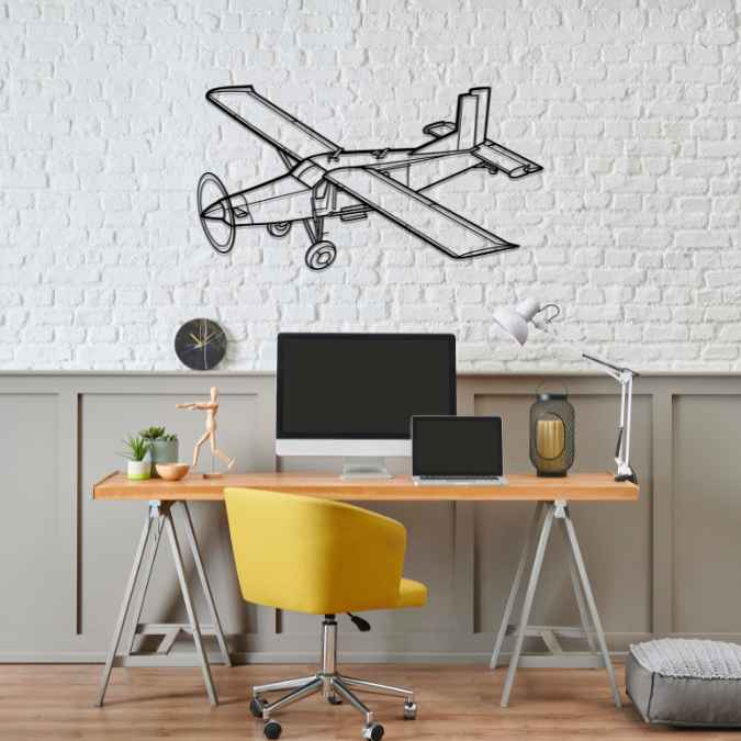 This PC-6 Angle silhouette wall art will give your hangar, office or room a unique look that will catch the attention of any aviation enthusiast and will add a subtle touch to your interior design.